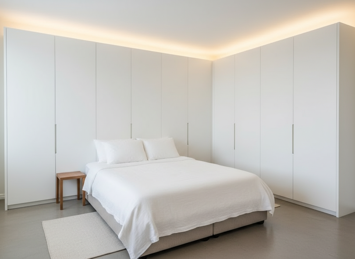 ארון קיר מלא 3 מטר, תקרת גבס עם תאורה עקיפה, צביעה לבנה